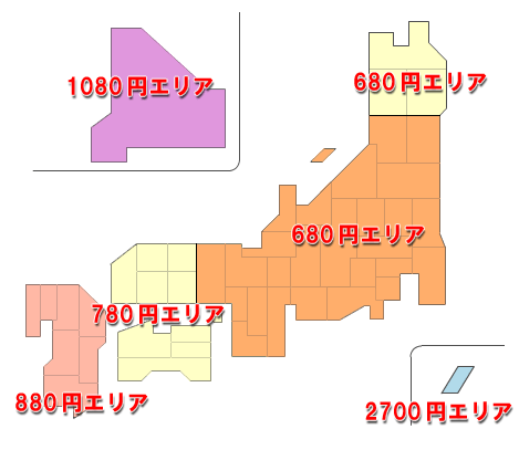 ギフトが激安だけど送料も安い!東北・関東・関西680円、中国・四国:780円、北海道・九州:880円、沖縄・離島:1080円